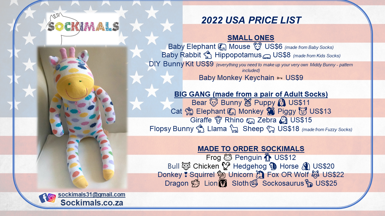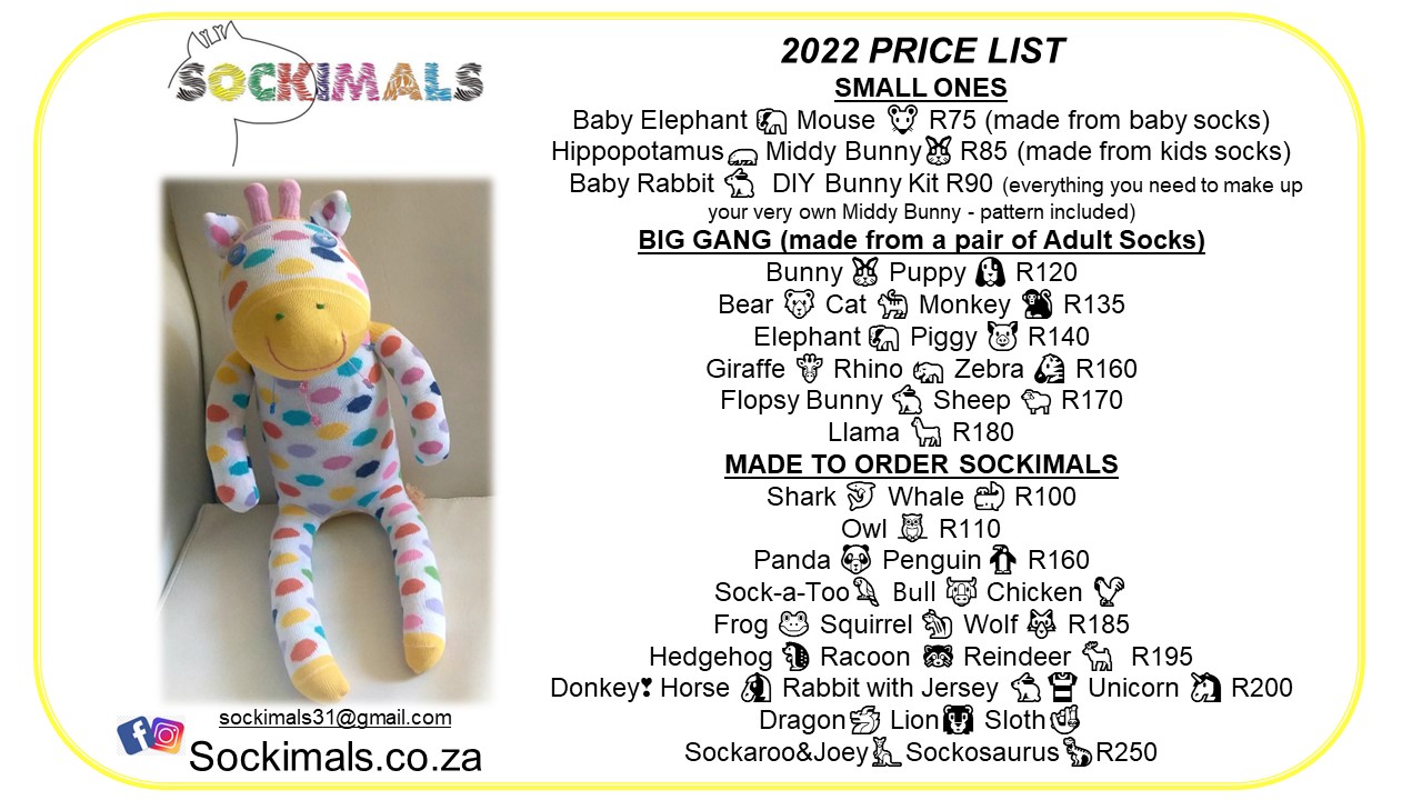 To place your order, please email Donna on sockimals31@gmail.com or donna@sockimals.co.za or send a Whatsapp to +2783 552 8778